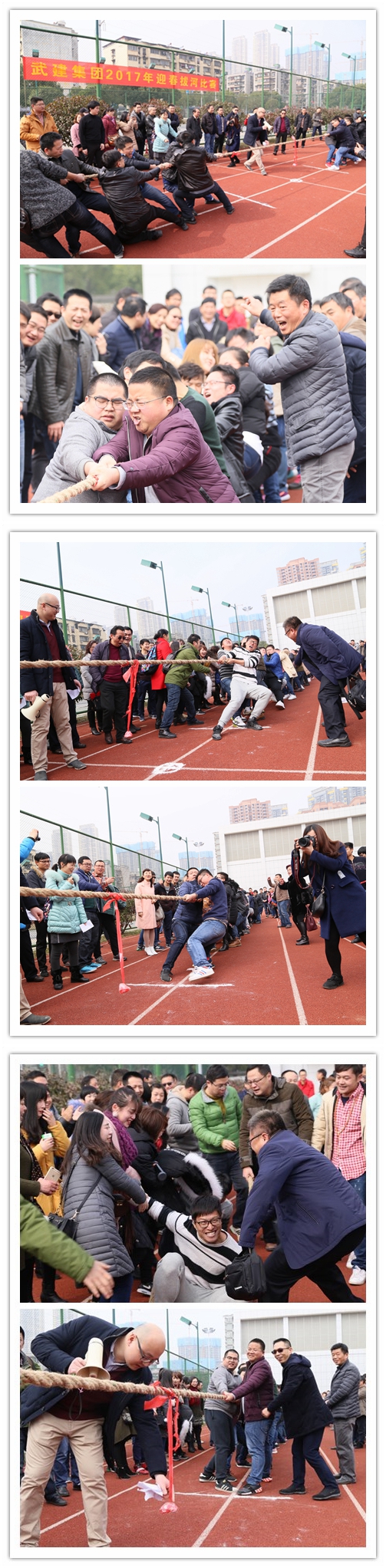 經過三輪激烈刺激的比賽,最終由工程項目一隊、富強公司隊和首次單獨組隊的機電安裝公司隊分別獲得比賽的第一、二、三名。迎春拔河比賽已成為武建集團迎新傳統活動,大家擰成一股繩,勁往一處使,擼起袖子齊上陣,2017,我們一齊努力干!