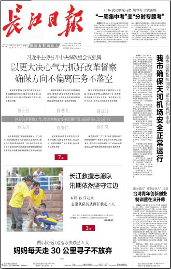 我市確保天河機(jī)場(chǎng)安全正常運(yùn)行(載《長(zhǎng)江日?qǐng)?bào)》2016年7月23日頭版)
