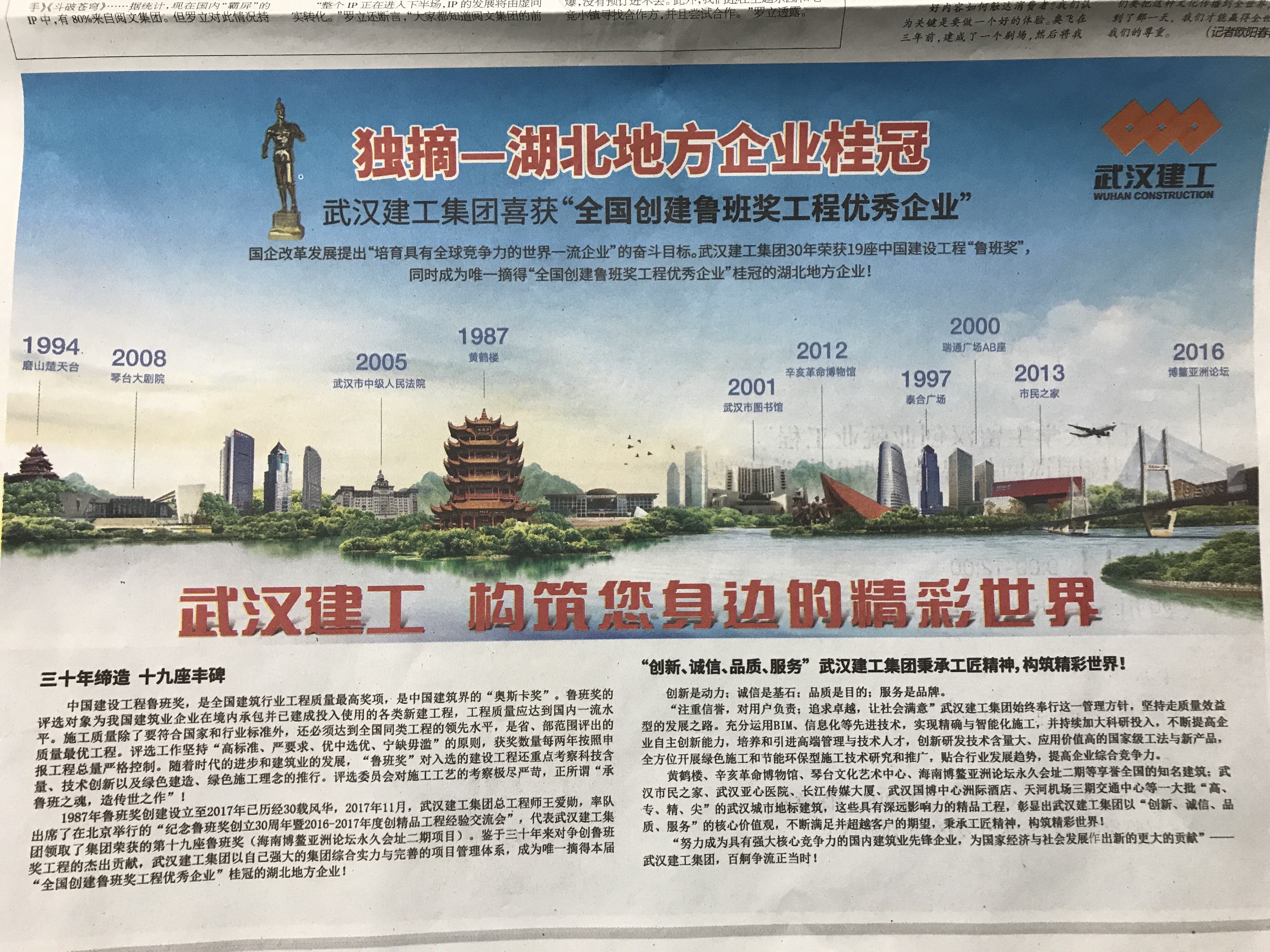 獨摘—湖北地方企業(yè)桂冠 武漢建工集團(tuán)喜獲“全國創(chuàng)建魯班獎工程優(yōu)秀企業(yè)”